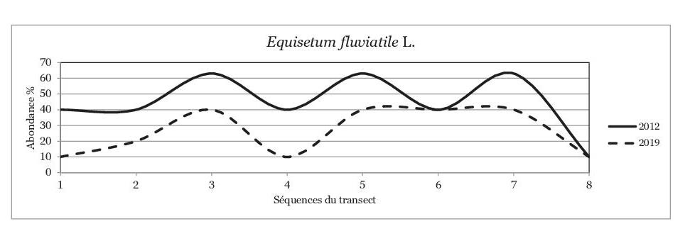 Diminution de l'abondance d'une espèce hygrophile entre 2012 et 2019 à Fontfreyde