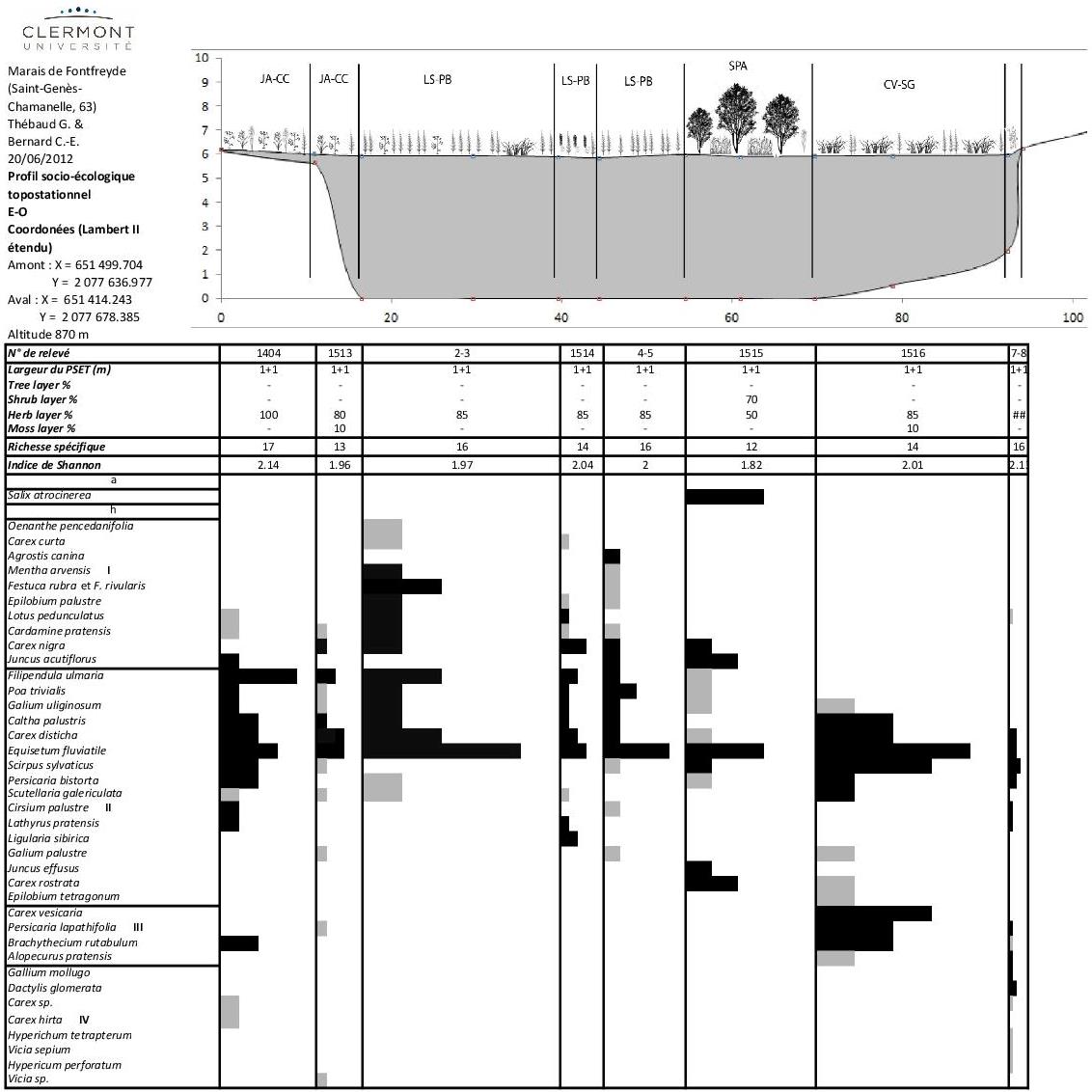 De mai à juillet 2022, l’équipe d’UniVegE est repassé sur 5 sites où avaient été établis des profils socio-écologiques pour étudier les changements de végétation comparés à leur état initial : deux sites clermontois, puy de Var (état initial 2012) et plateau de Chanturgues (2016) ; la tourbière de Fontfreyde ( St-Genès-Champanelle 2012, 2019); le Lac des Bordes (Compains, 2012) et la tourbière du Sapey (Saint-Victor-Montvianeix, 2013). ). Il s’agit d’un partenariat avec le département du Puy-de-Dôme et l’observatoire de la biodiversité de Clermont-Auvergne-Métropole. Les placettes sont intégrées au réseau européen ReSurveyEurope Initiative. Les données comparatives diachroniques seront analysées cet automne au moyen du logiciel SurVegE.